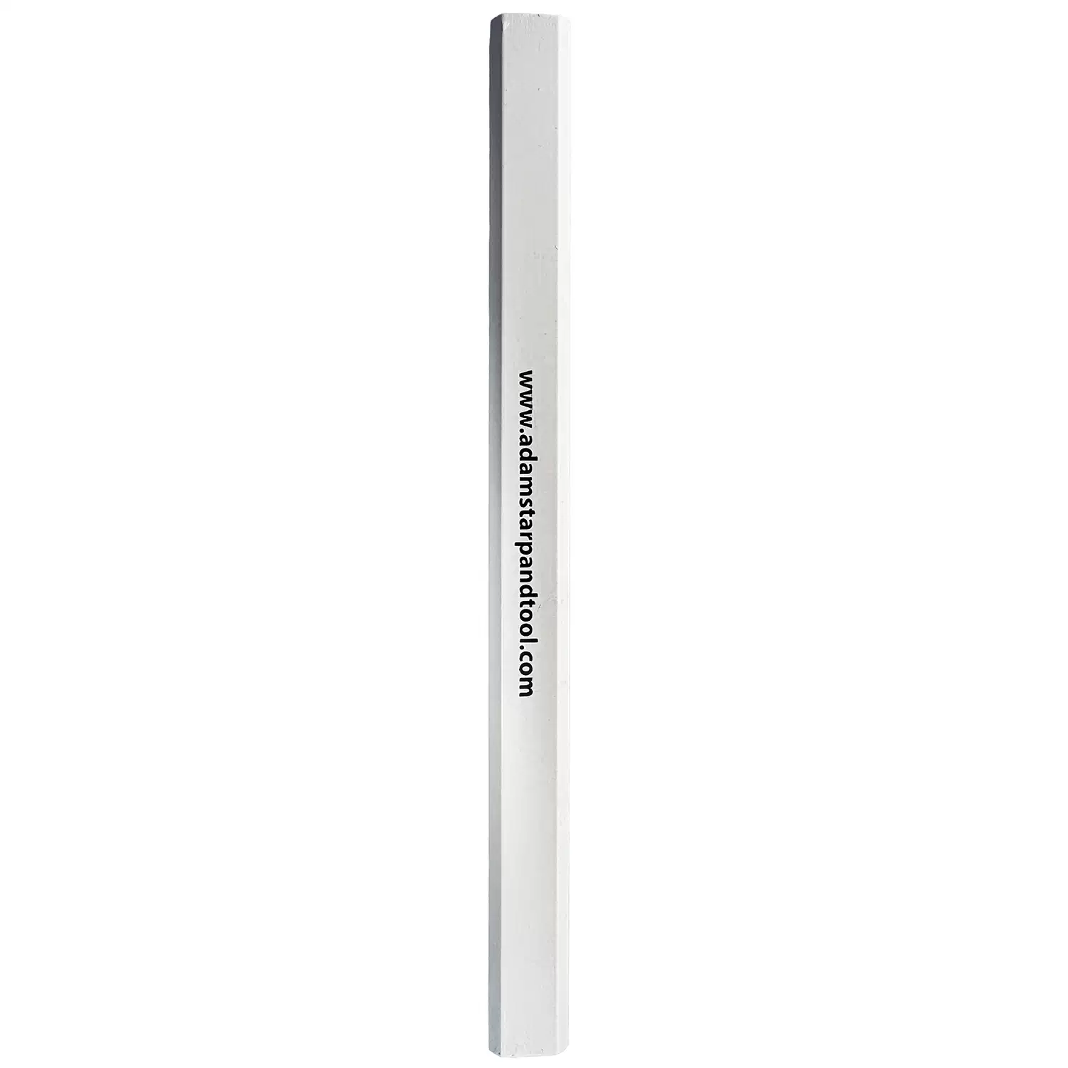 This carpenter pencil uses a non-circular (flat) graphite core designed for steady lines on rough or uneven surfaces where standard round pencils tend to skid or snap. The solid wood body is finished with a high-quality lacquer to reduce splintering and help the pencil hold up to daily use in a toolbox. The bright white finish makes it easy to spot on busy job sites, and it features the Adam’s Tarp & Tool logo on one side with Adam’s website address on the other for clear branding. Sold individually, with (72) pencils per box for bulk site supply.