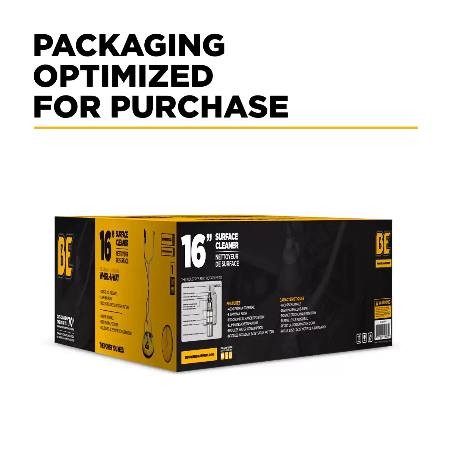 Customers choose the BE Power Equipment 85.403.003 because it helps clean large flat surfaces faster and more evenly than a standard pressure washer wand. The 16 inch path, dual rotating jets, and commercial operating range make it a practical choice for contractors, maintenance teams, and property owners who want better productivity on concrete and other hard surfaces.