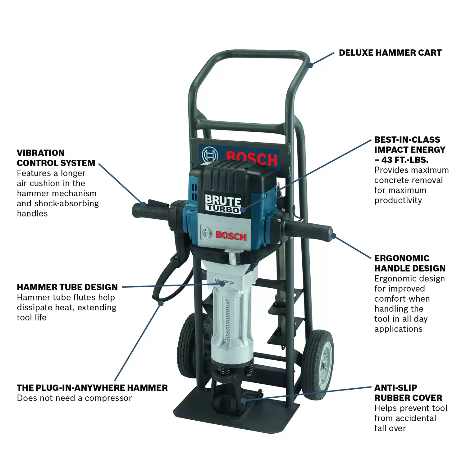 Bosch 1-1/8″ Brute Turbo Breaker Hammer Deluxe Cart Kit At a Glance