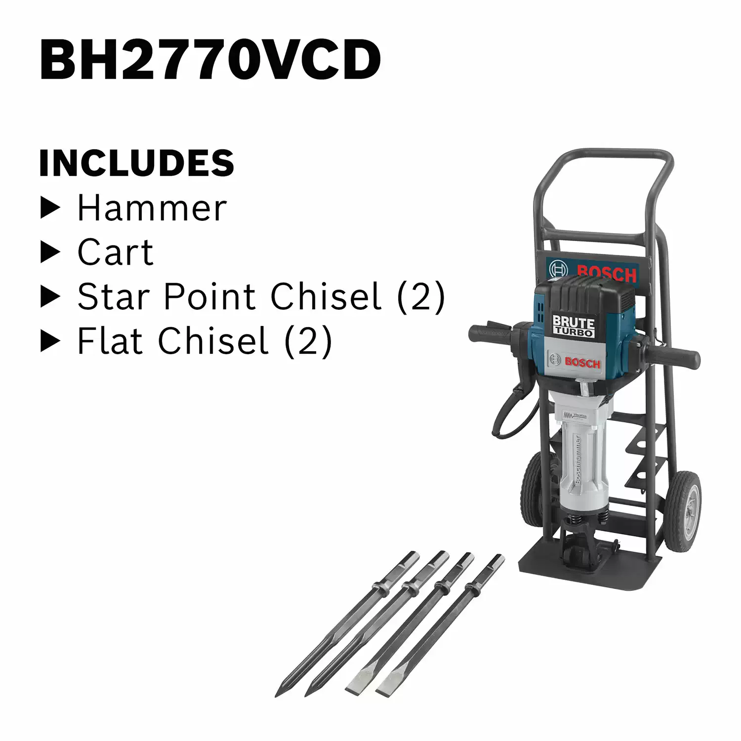 Bosch BH2770VCD Corded 1-1/8″ Brute Turbo Breaker Hammer Deluxe Cart Kit 120V 15A Warranty