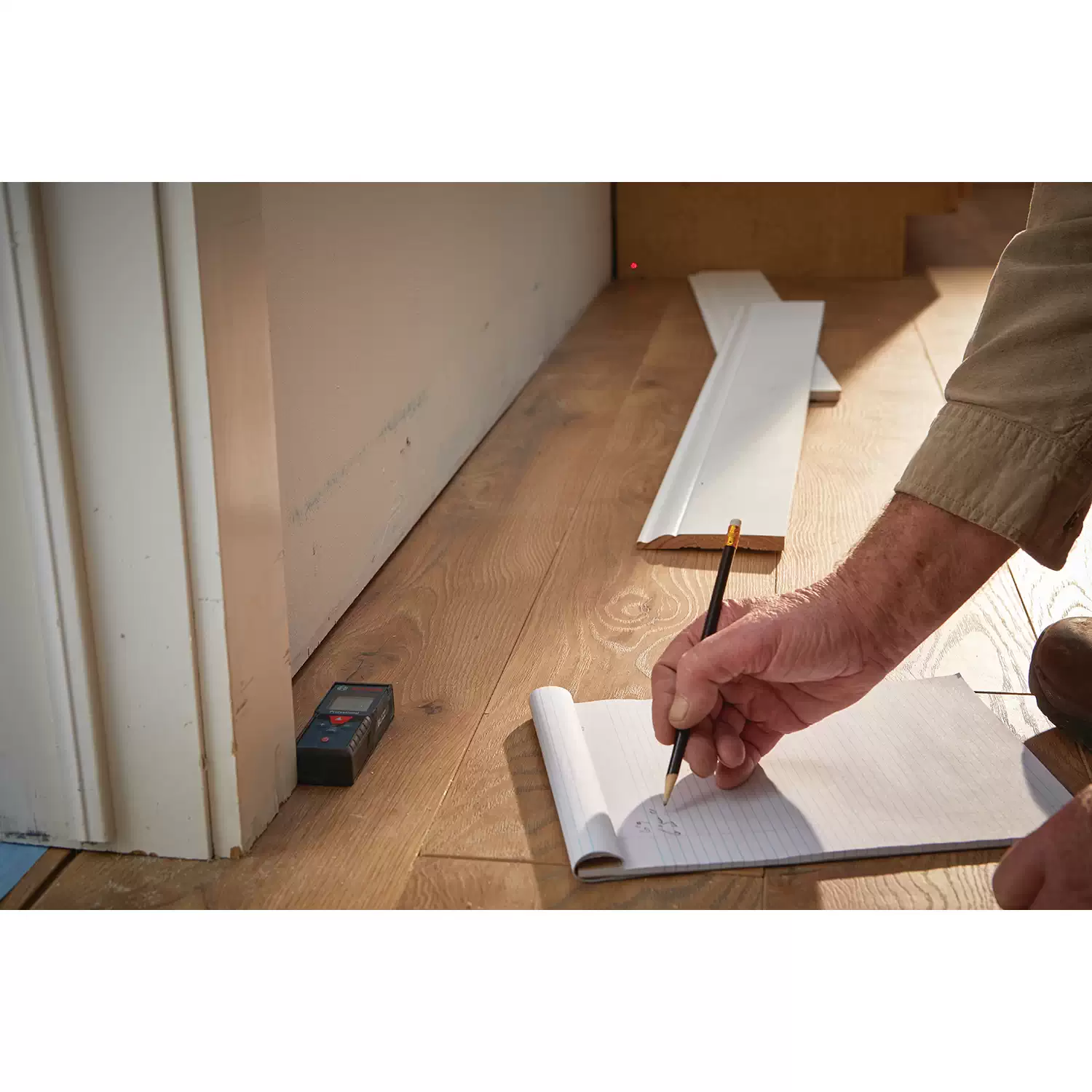 Customers choose the Bosch GLM165-40 because it gives them quick, repeatable measurements without the hassle of extending a tape across long rooms or open areas. The compact size, backlit screen, memory storage, and real-time measurement mode make it a useful laser tape measure for quoting jobs, checking layouts, and working through punch lists with less setup time.