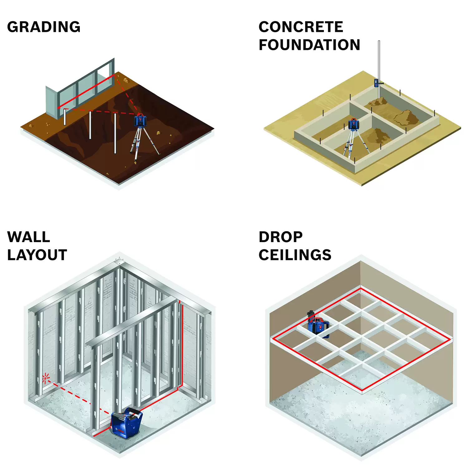- Trade Schools and Training Programs: Supports instruction in rotary laser setup, leveling, and layout practice.