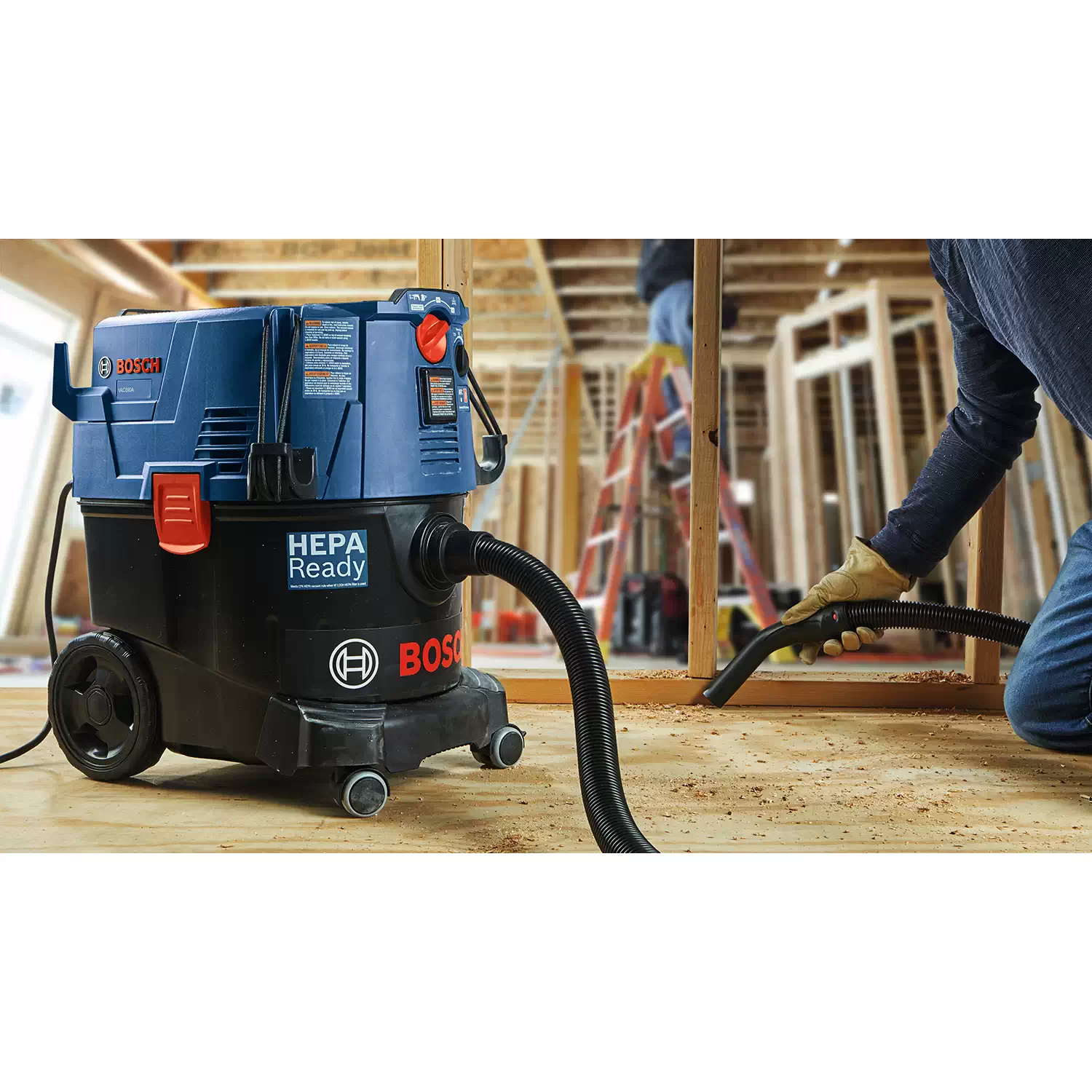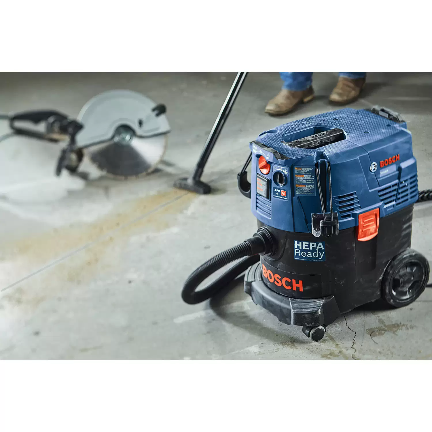 Crews also choose this Bosch dust extractor because it is set up for real jobsite use. Power tool activation makes the vacuum easier to pair with grinders, saws, and rotary hammers, while the fleece bag and HEPA filter support cleaner dry dust handling. For users looking for a 9-gallon dust extractor, a Bosch HEPA vacuum, or a wet/dry extractor for Bosch PRO+GUARD dust control, the VAC090AH is a practical option for daily construction and maintenance work.