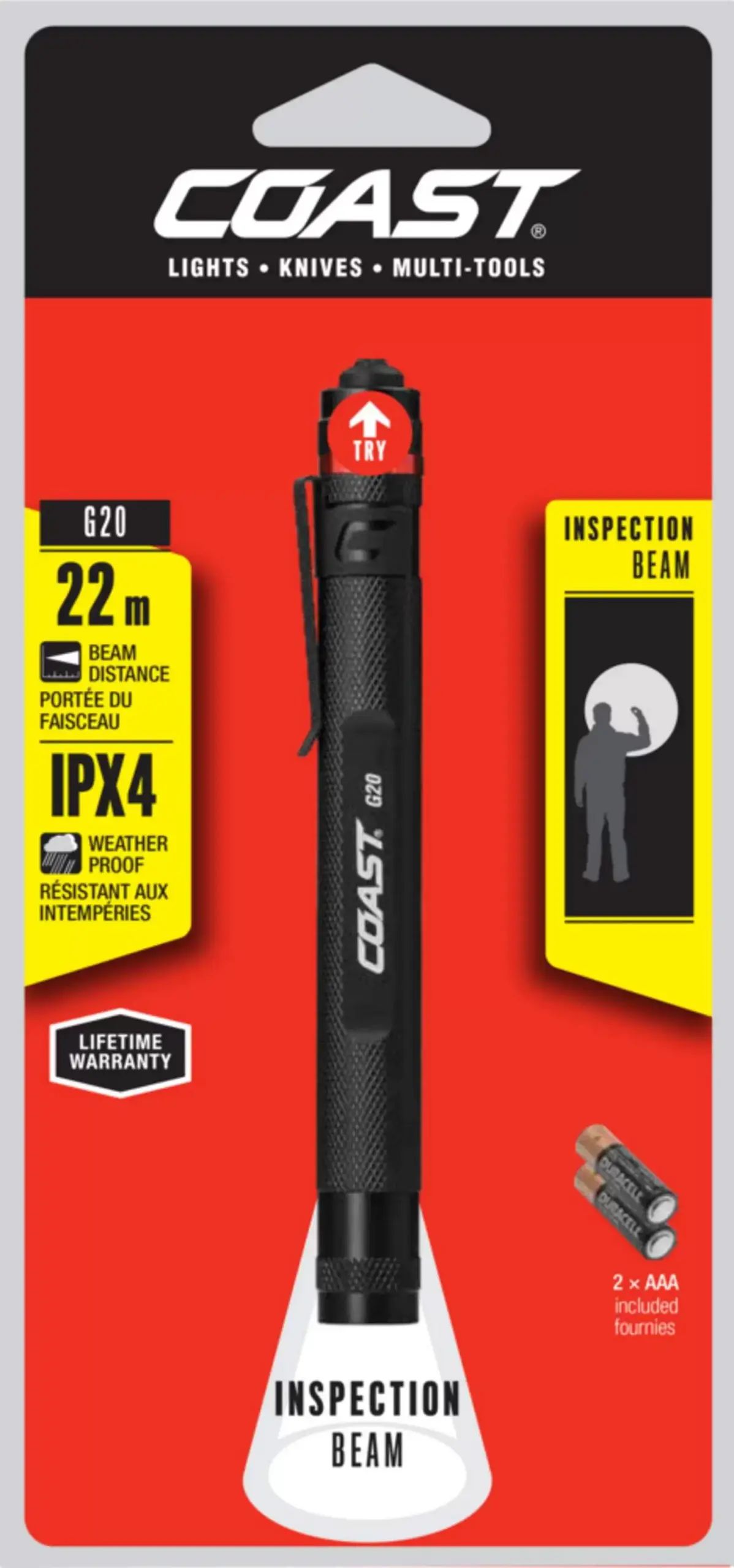 - Coast G20 Inspection Flashlight features a slim shape that makes it the perfect light to keep in a tool bag, purse or briefcase