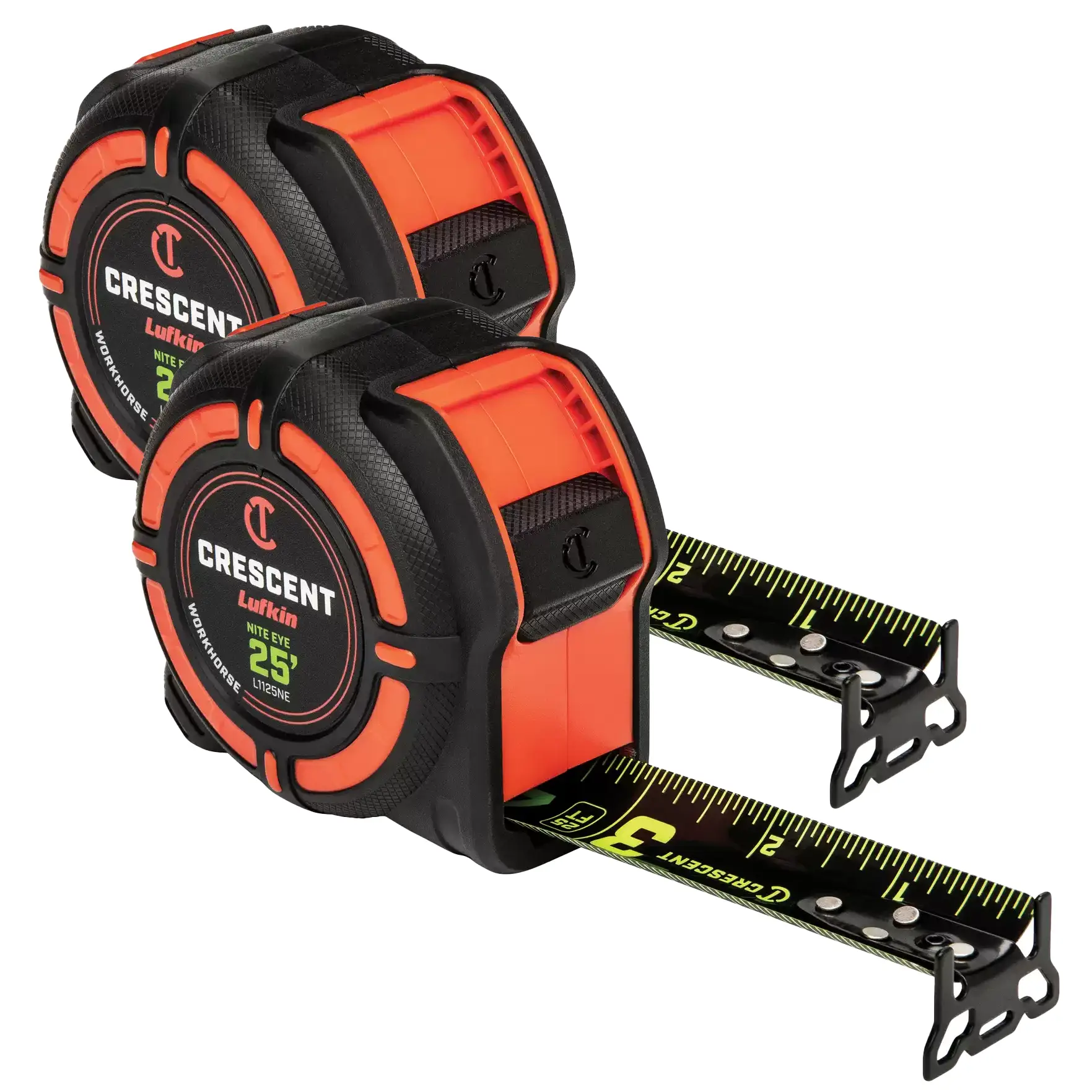 Crescent Lufkin L1125NESET2V 2PK 1-1/4″ x 25′ Workhorse Nite Eye Double Sided Tape Measure Includes