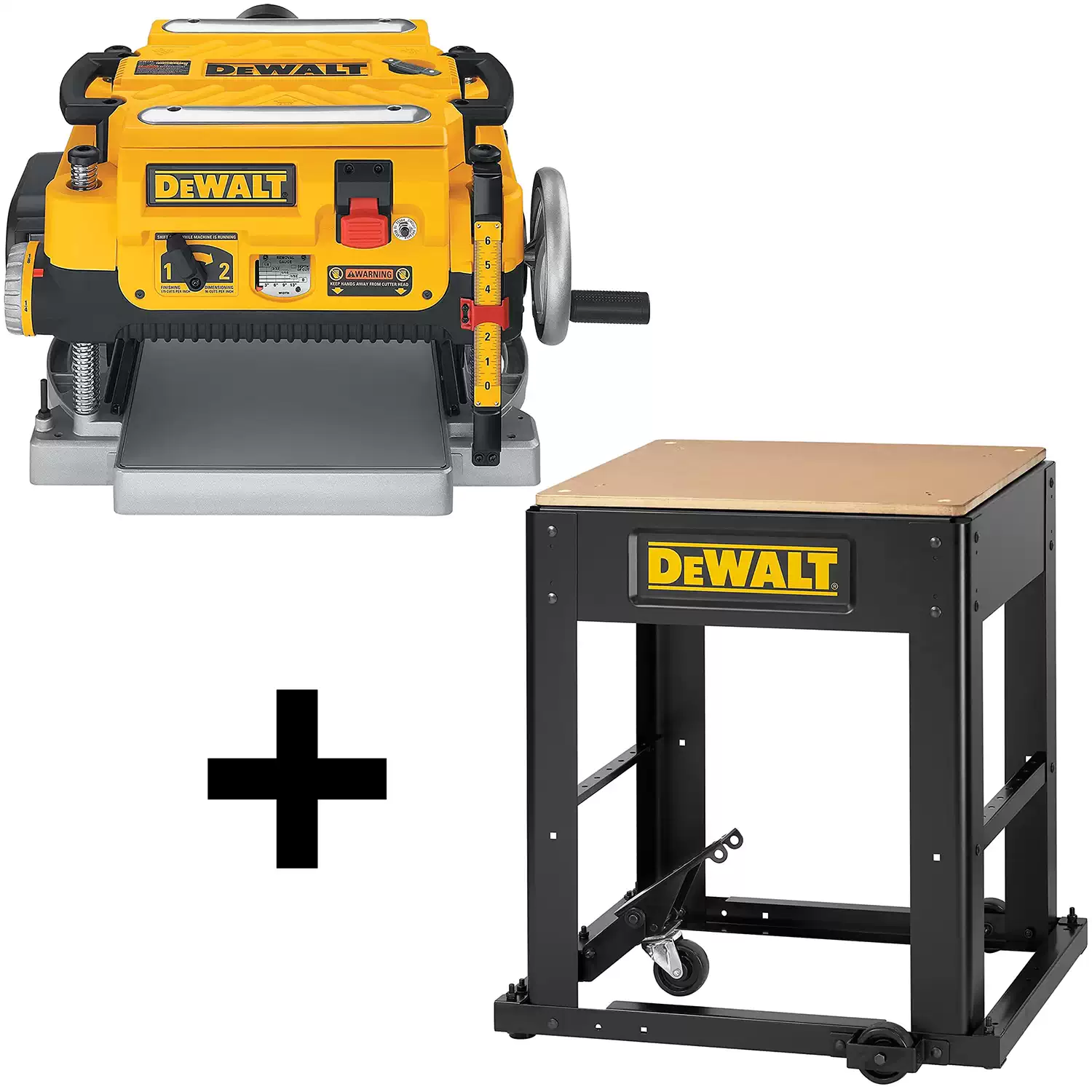 DEWALT DW735S 13″ Portable Thickness Planer + Heavy Duty Stand with Integrated Mobile Base Includes