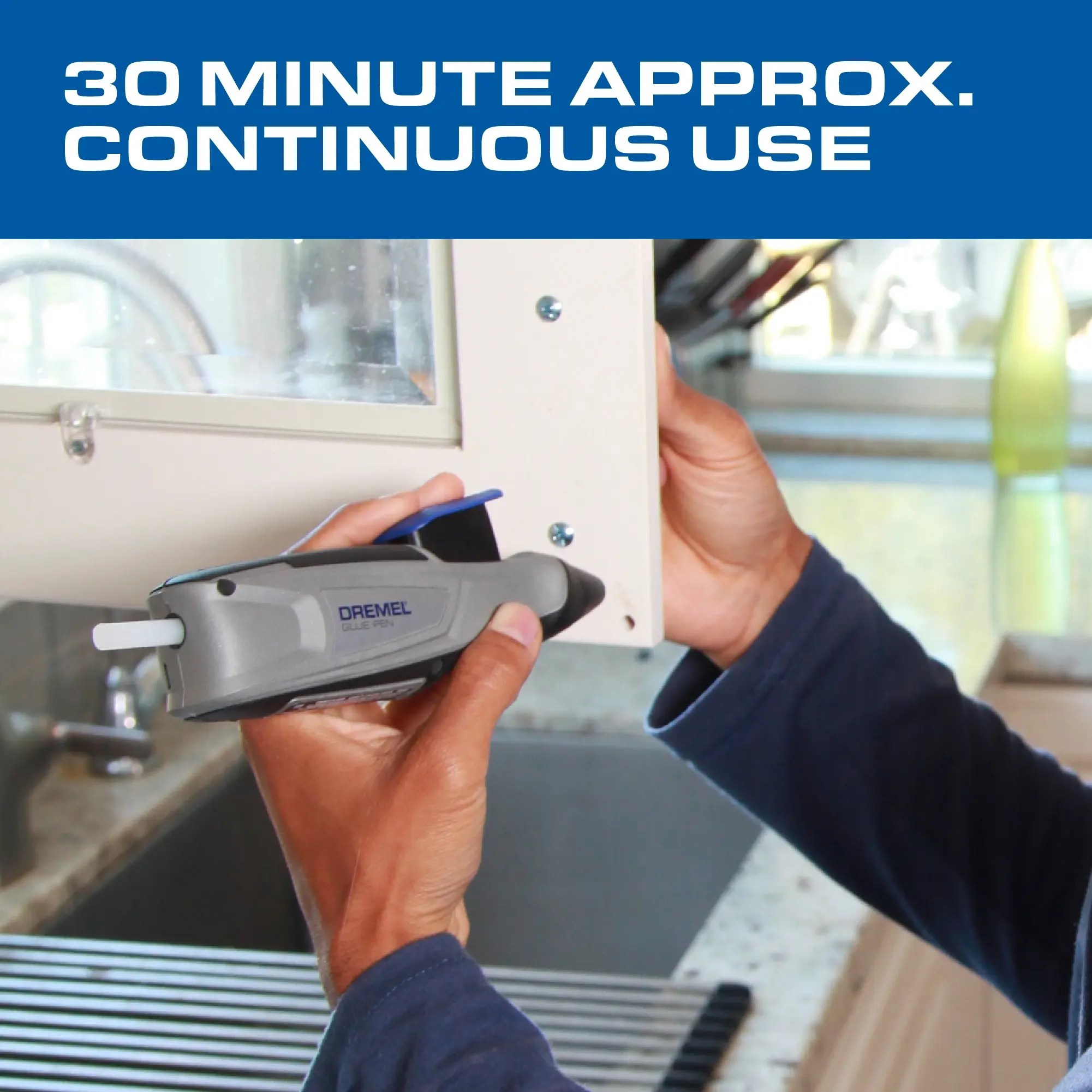 - Unlike other glue guns, the Dremel glue pen heats up in approximately 15 seconds