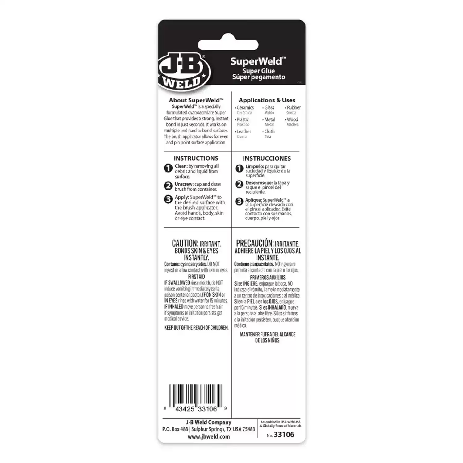 J-B Weld 33106 .21oz SuperWeld Brush On Instant Adhesive Features