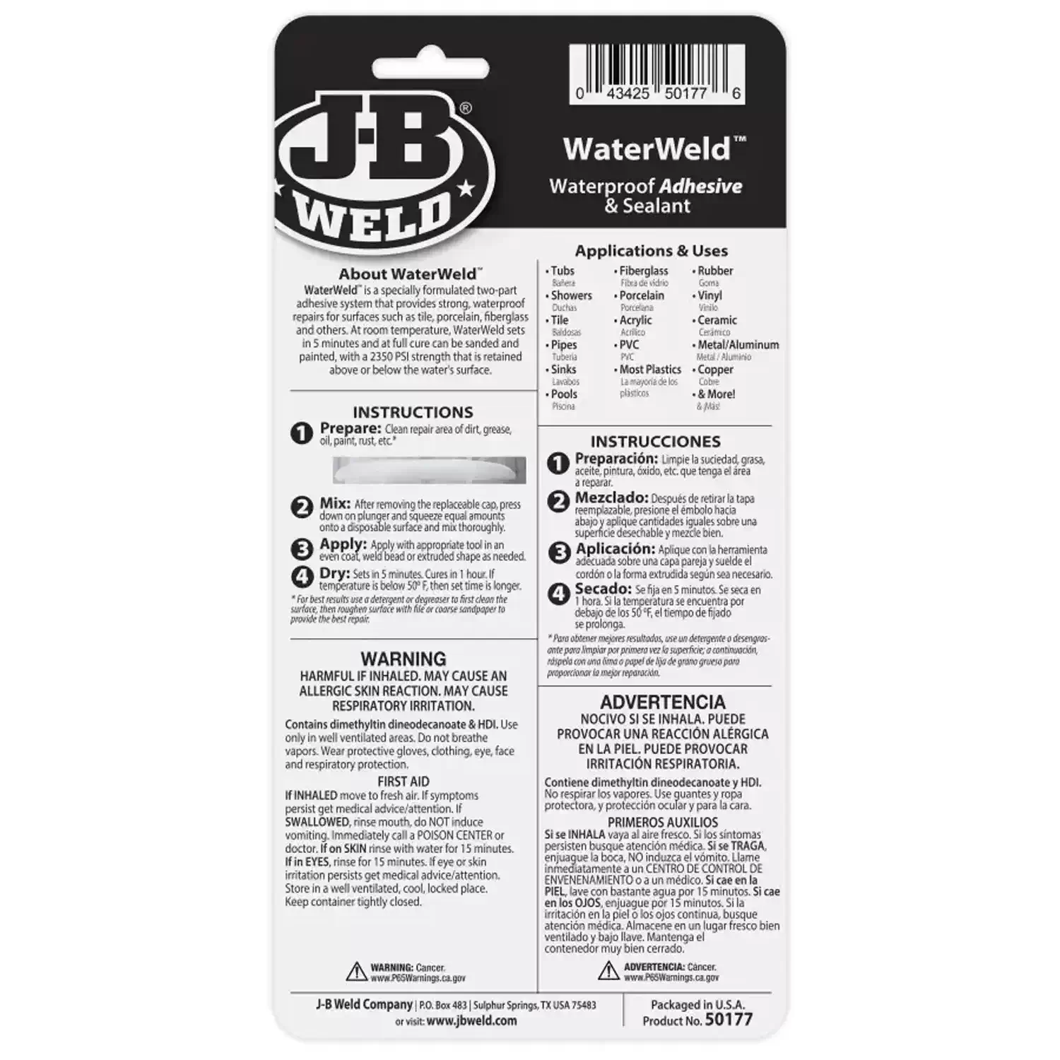 J-B Weld 50177 25mL WaterWeld Waterproof Adhesive & Sealant Syringe Features