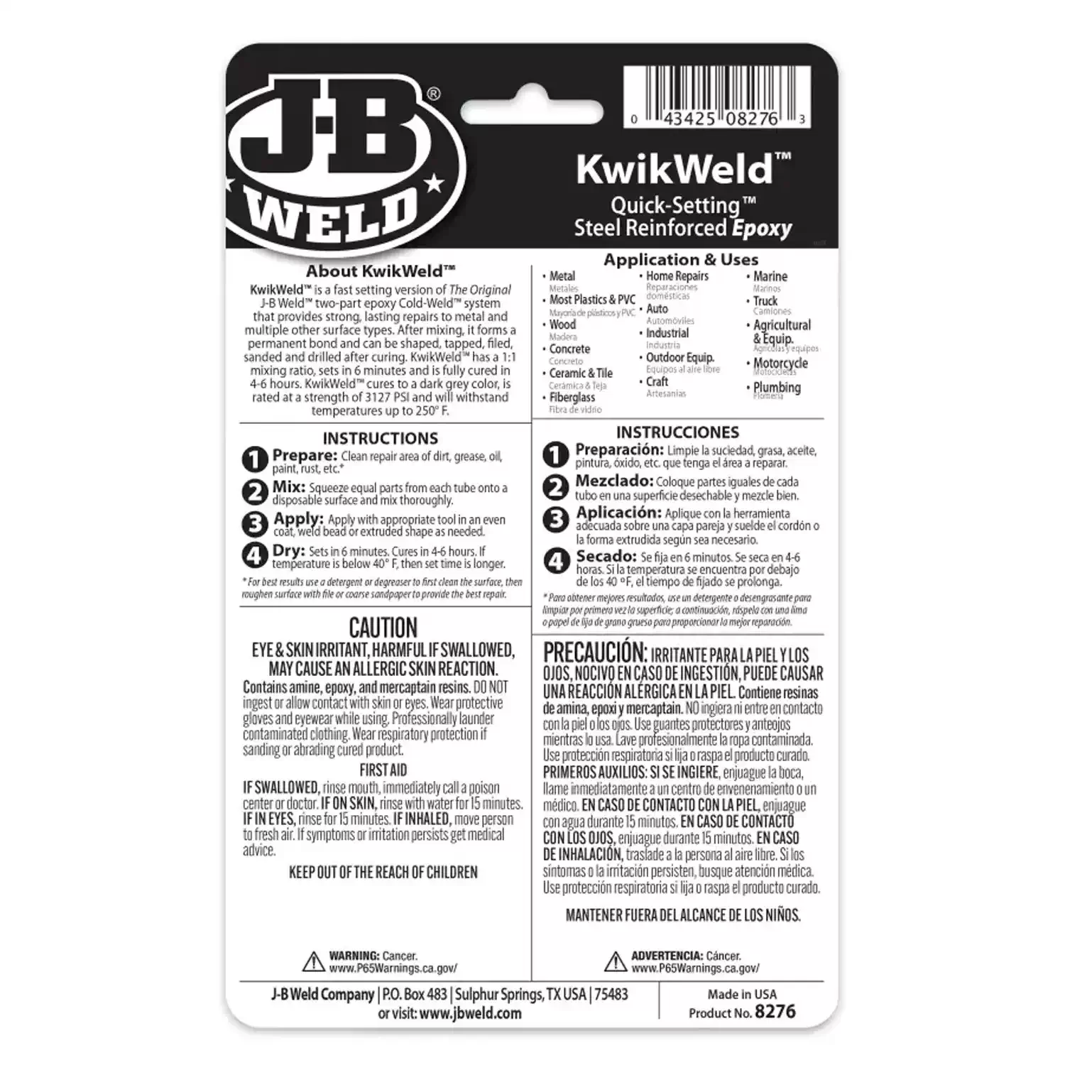 J-B Weld 8276 2oz KwikWeld Twin Tube Quick Setting Steel Reinforced Epoxy – World’s Strongest Bond