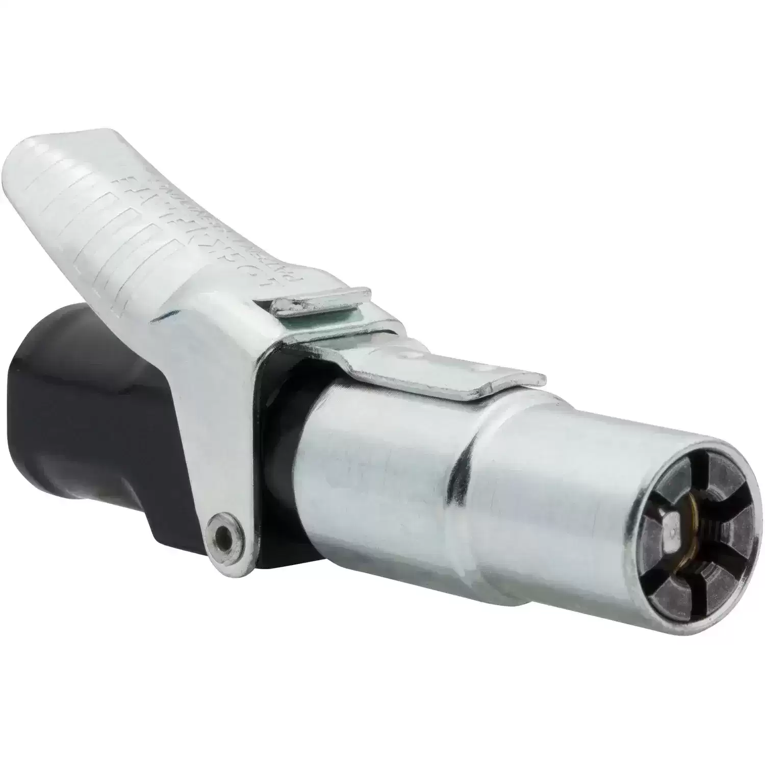 The LockNFlate LNL65002 is a closed-flow, straight air chuck that locks onto any Schrader valve for secure, hands-free tire inflation from a compressor or air hose. Its six steel jaws clamp evenly around the valve stem to stop leaks and protect the stem from side loading, while a spring-loaded TPU seal maintains an airtight connection. Closed-flow operation means air will not pass until the chuck is engaged on the valve—ideal when you’re feeding air directly from a compressor, hose whip, or manual inflator without a bleed path. A 1/4″ NPT inlet threads to common shop lines, and the hardened steel collet is built for daily use in tire shops, fleet bays, and home garages. Lock it on, stand clear, and fill with confidence; when you’re done, flip the lever for a clean release and accurate pressure checks.
