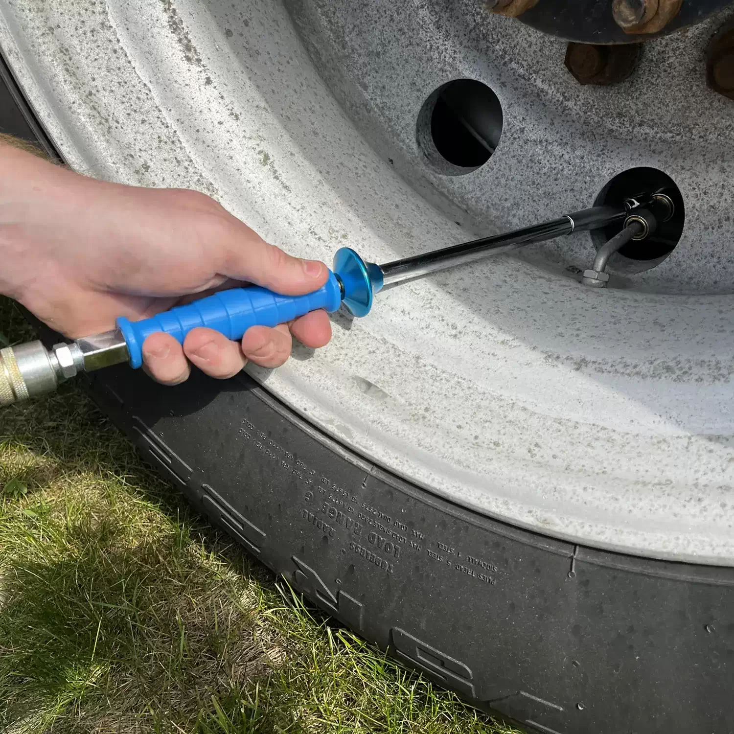 For semi tractors, box trucks, buses, RVs, and heavy service trailers, duals can slow a simple pressure check. The LNL65108 solves that with extended reach, a positive lock on the valve, and tool-side release. The result is repeatable hookups, accurate gauge readings, and clean disconnects—saving time on each wheel position across a full tire round.
