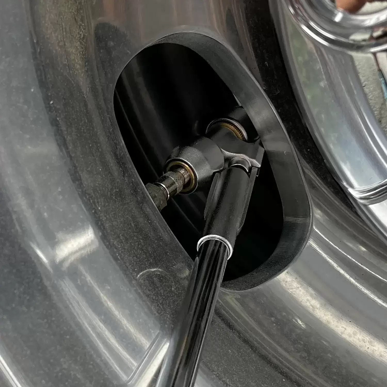 - Two-jaw locking head: Holds the Schrader stem securely for hands-free, leak-free inflation.