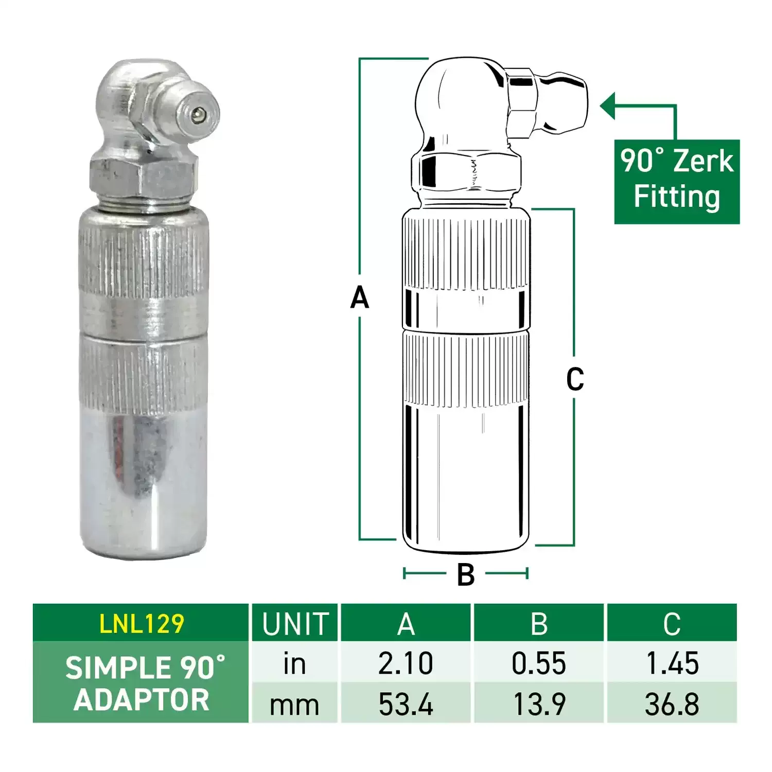 LockNLube LNL129 Simple 90° Grease Coupler Adapter Specifications