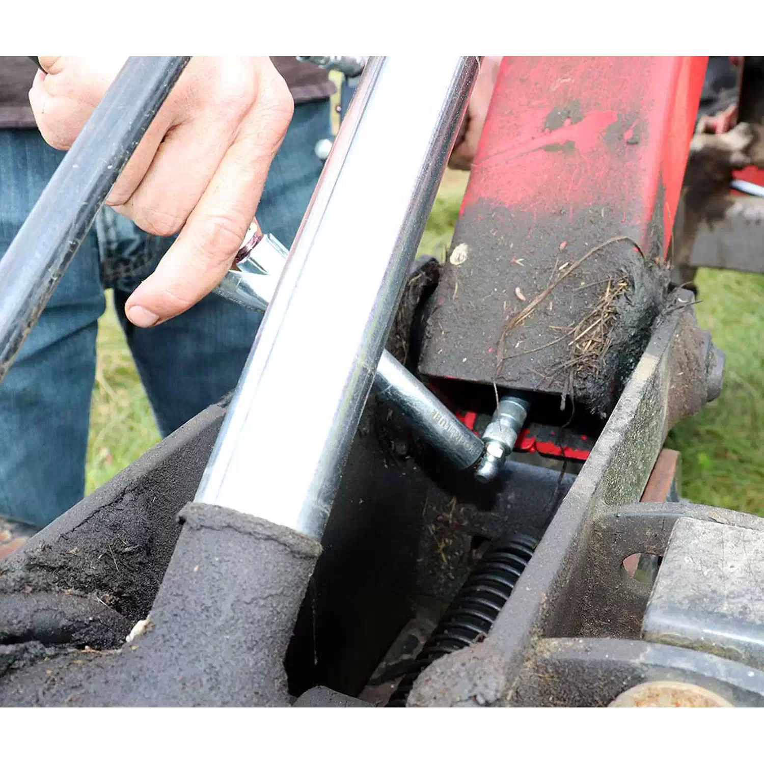 - Right-angle access: Reaches 90° Zerk fittings in confined spaces.