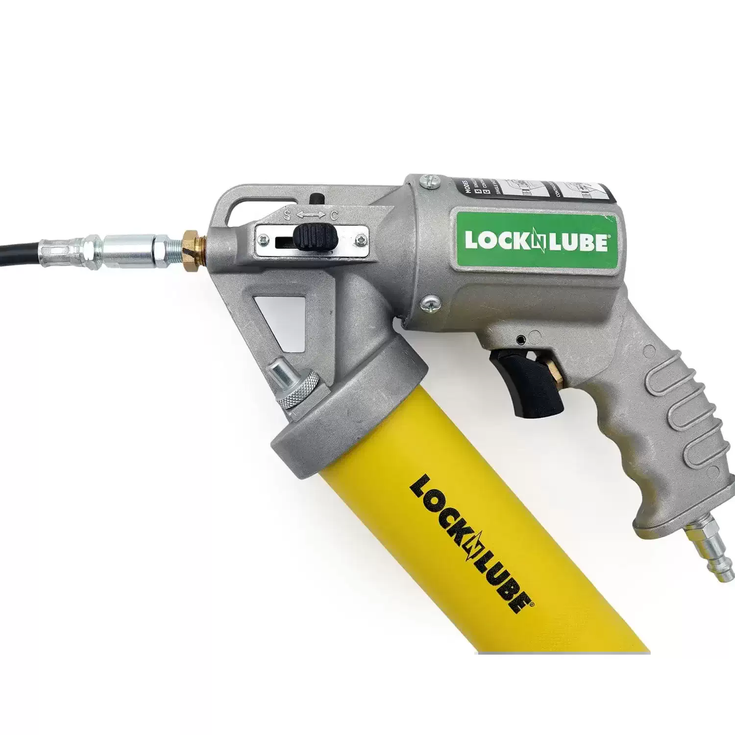 LockNLube LNL262 16/14.5oz Yellow 2-in-1 Pneumatic Grease Gun Features