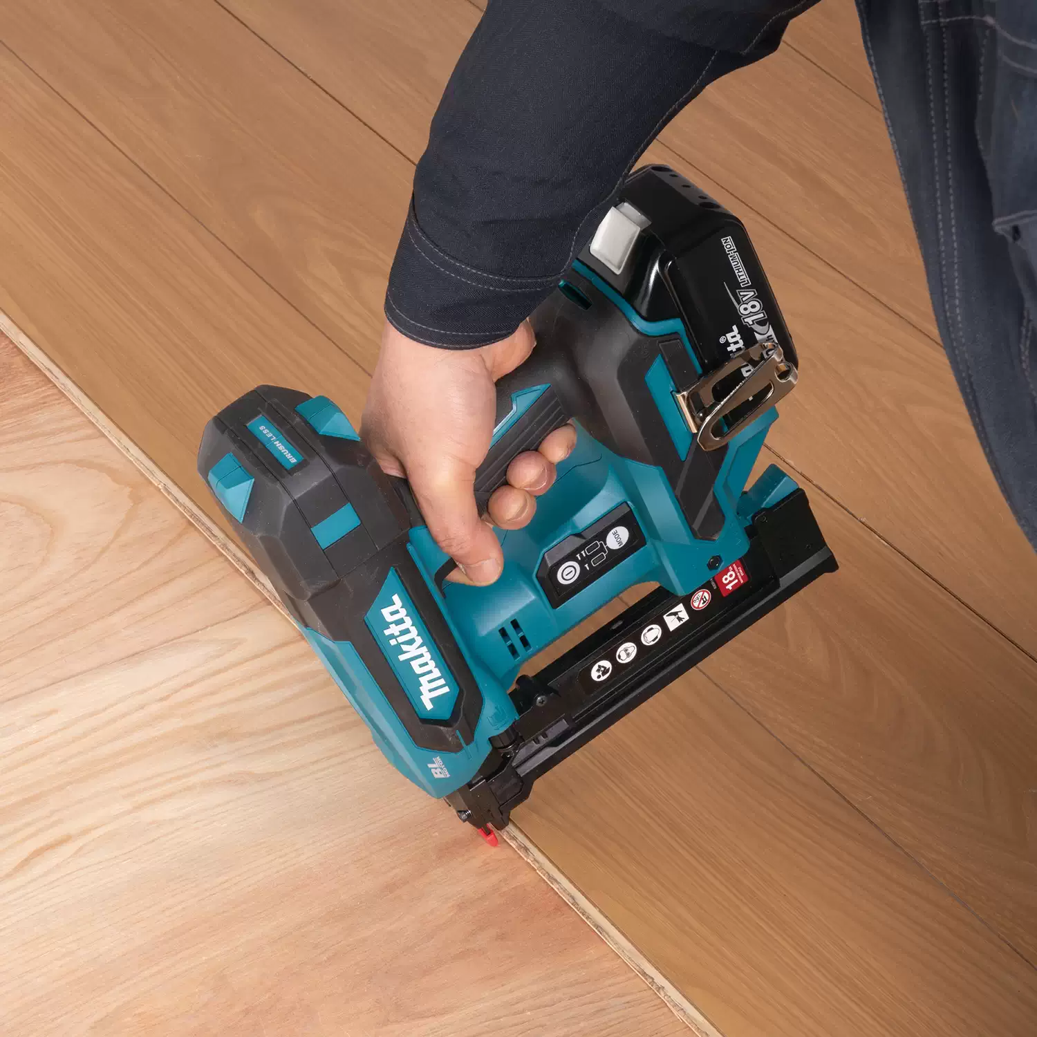 - 18V LXT Brushless Power: Cordless 18-gauge narrow crown stapler that runs on Makita 18V LXT batteries for hose-free fastening.