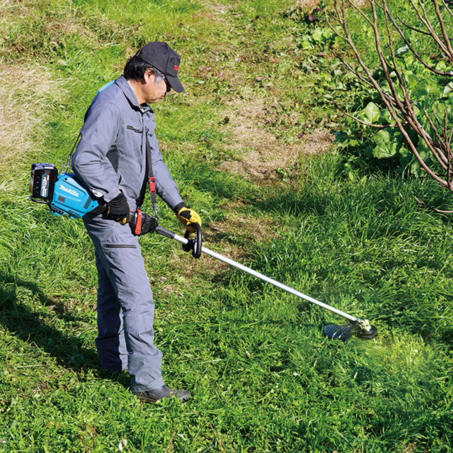 Crews choose the UR014GT202 because it offers cordless line trimmer convenience with the cutting force users expect from a 35cc gas unit. The 17-3/4″ cutting width and variable-speed lever help maintain pace on large properties, while reverse rotation clears the head so work continues without disassembly. Safety features—AFT, electric brake, and soft start—translate to better control and fewer interruptions around obstacles. With two 5.0Ah batteries, a rapid charger, and IPX4 construction, teams get dependable runtime and quick turnarounds across changing weather. For organizations standardizing on the 40V XGT platform, this kit delivers high output, practical runtime, and easy maintenance for daily professional landscaping.