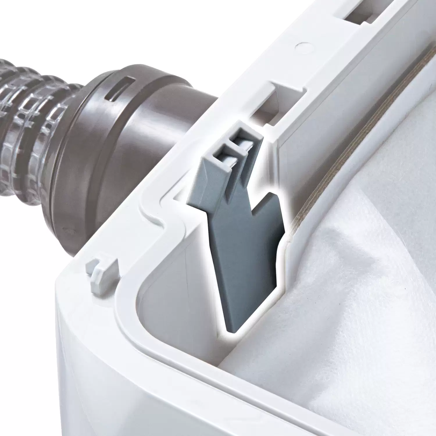 • AUTOMATIC FILTER CLEANING: Dust bag with spring loaded rocker maintains suction power while reducing filter clogging