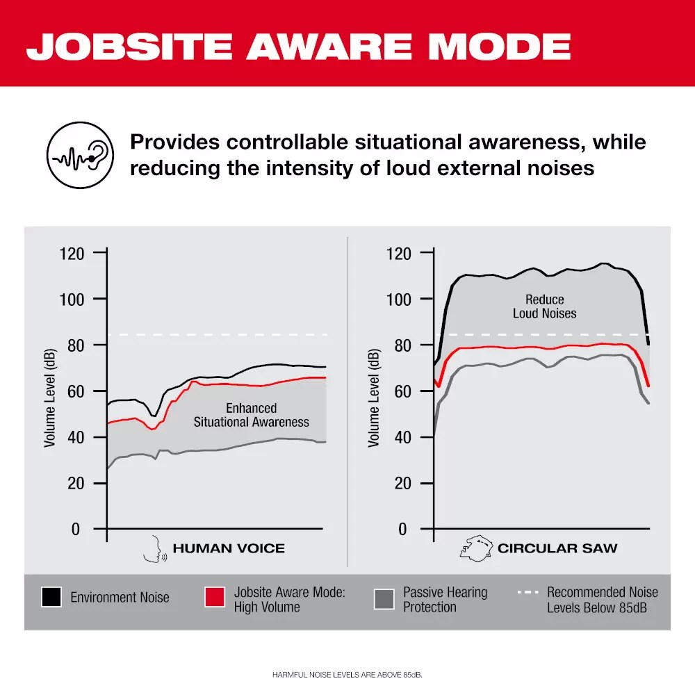 - Jobsite Aware Mode Provides Controllable Situational Awareness while Reducing the Intensity of Loud External Noises