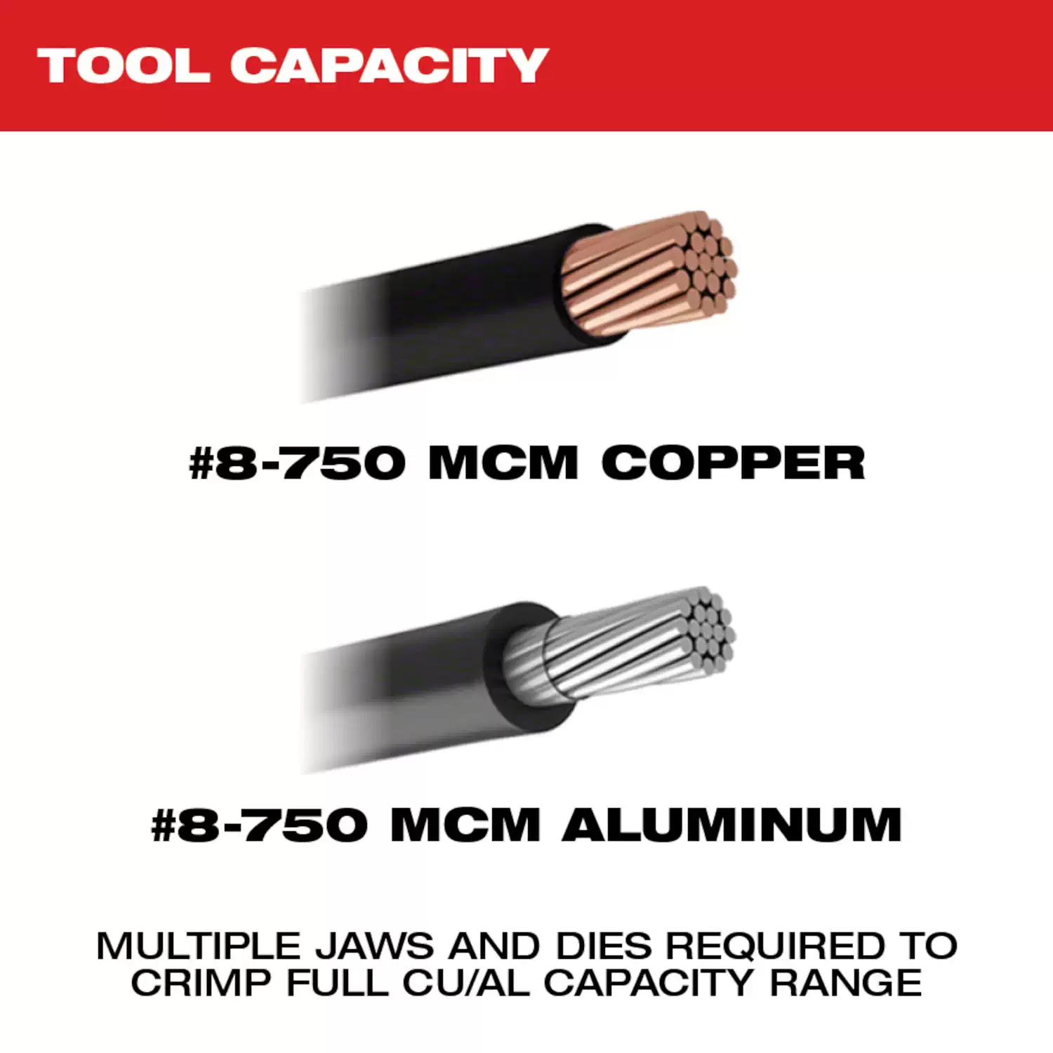 Milwaukee M18 FORCE LOGIC 600 MCM Al Crimper w/ 750 MCM Expanded Jaw At a Glance