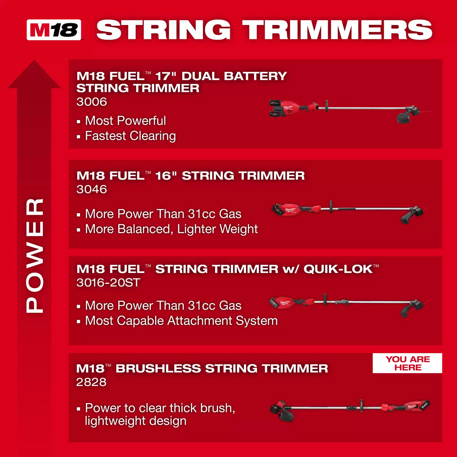 Milwaukee 2828-20E M18 Brushless 16″ String Trimmer – Tool Only Features