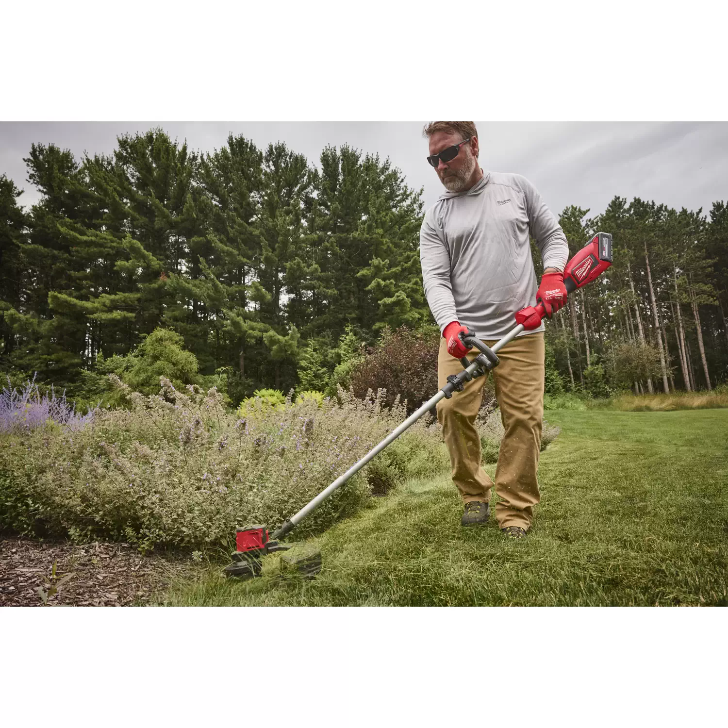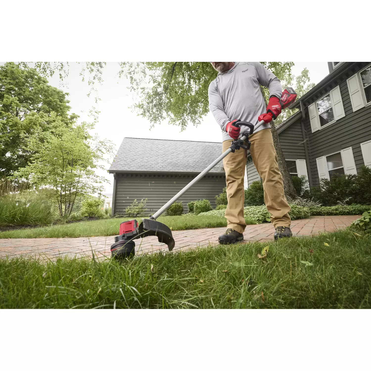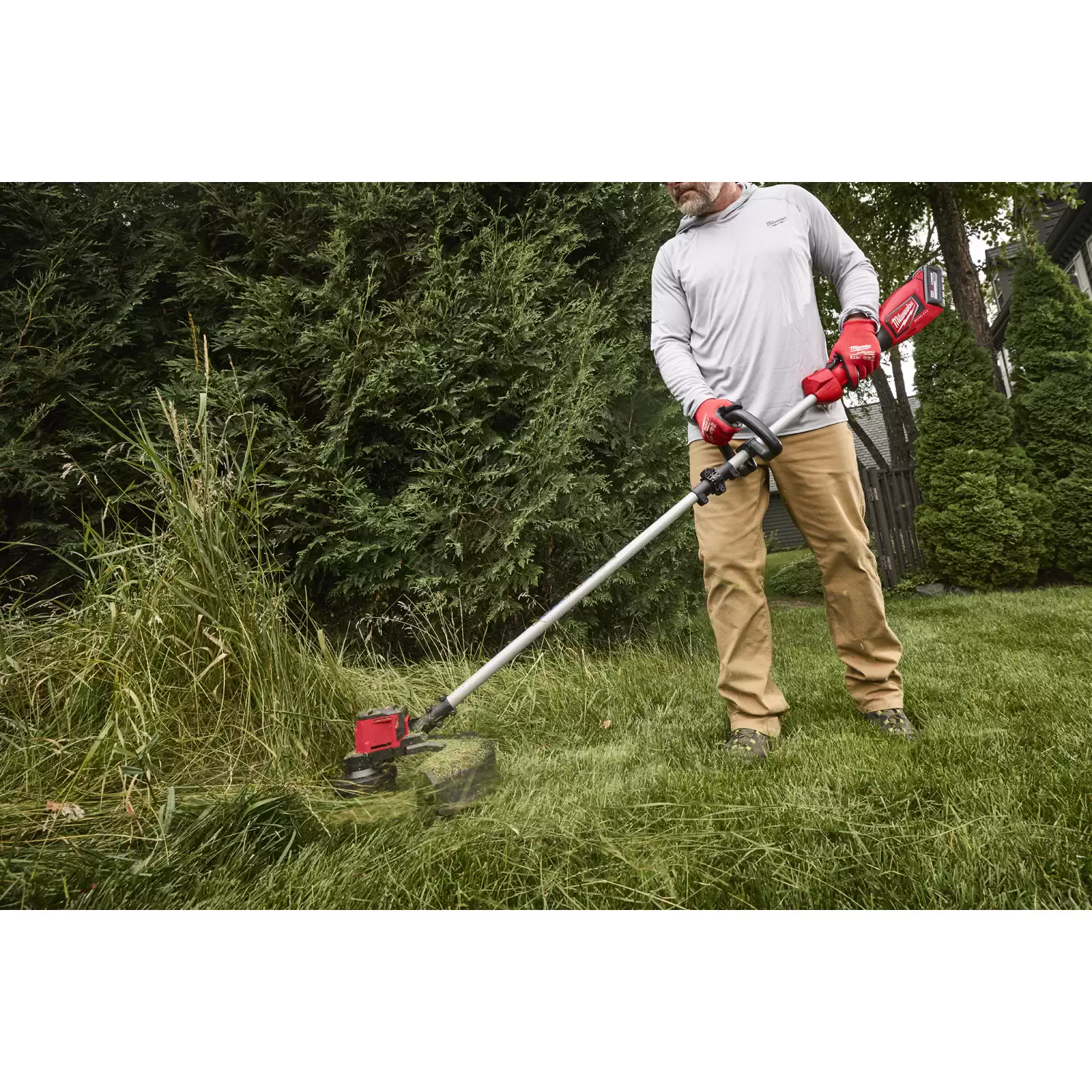 Crews choose this M18 string trimmer because it brings gas-like cutting speed to a cordless grass trimmer they can use anywhere on the property. The adjustable 14″–16″ cutting swath and up to 6,200 RPM let technicians clear long fence lines and thick growth without switching tools. The Easy Load head shortens downtime when swapping .095″ line, and the variable-speed trigger keeps control tight around posts and edging. On sites already running M18 power tools, teams use the same batteries and chargers they own, cutting setup time and simplifying transport. For landscapers, municipal workers, and maintenance staff, it’s a dependable “tool-only” trimmer that balances power, runtime, and quick reloads to keep weekly trimming efficient.