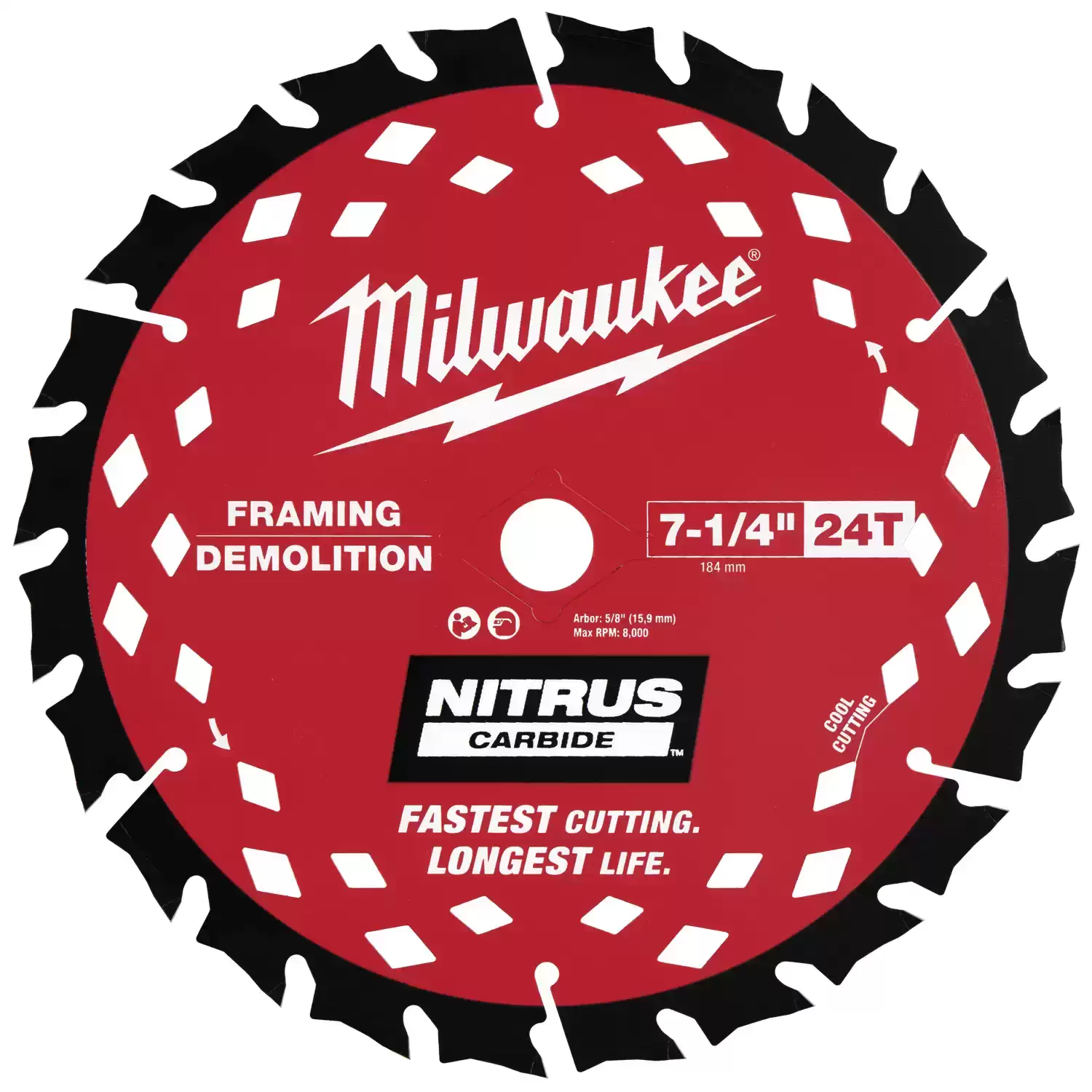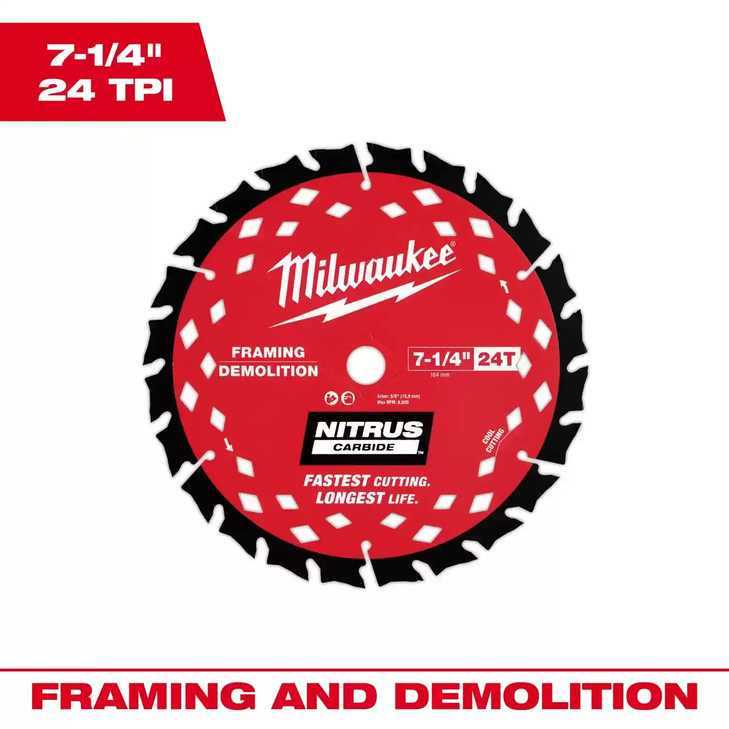 Milwaukee 7-1/4″ 24T NITRUS Carbide Framing & Demolition Circular Saw Blade At a Glance