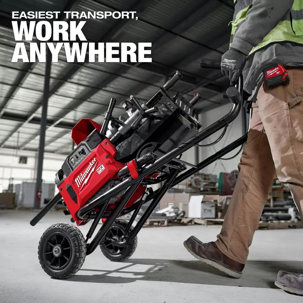 The MILWAUKEE MX FUEL Pipe Threading Machine is the industry’s first cordless threading machine, designed to make your workflow easier and more productive. Powered by MX FUEL REDLITHIUM batteries, the machine eliminates the need to work near an outlet, allowing you to work anywhere – set up wherever it’s most convenient, and even in places that aren’t possible with other threading machines. Combined with a spring-assisted cart for easiest transportation and set up, plus a self-contained oil reservoir to keep oil off the ground. The MX FUEL Pipe Threading Machine allows you to easily move with your work, eliminating wasted time walking back and forth on the jobsite. For jobs requiring threading and grooving, the machine’s second hammer chuck enables the connection of roll grooving attachments without requiring any teardown or additional adapters, saving set-up time during every changeover. The Milwaukee NPT Pipe Threading Die Head w/Micro-Adjust not only automatically releases for each thread, but the Micro-Adjust knob enables the easiest, most controlled die adjustments for consistent quality threads over time. The MX FUEL REDLITIUM XC406 battery pack delivers up to (140) ¾” cut, ream, and threads per charge, providing the runtime to work all day, and the power to thread up to 2” black iron pipe, stainless steel, rigid metal conduit (RMC) and more. Once the job is complete, the machine can be stored vertically upright without spilling, reducing the storage footprint. The threader is compatible with ONE-KEY Technology that wirelessly connects to a smartphone to track the tool’s location, manage it in inventory, and lock the tool out for added security and protection to your investment.