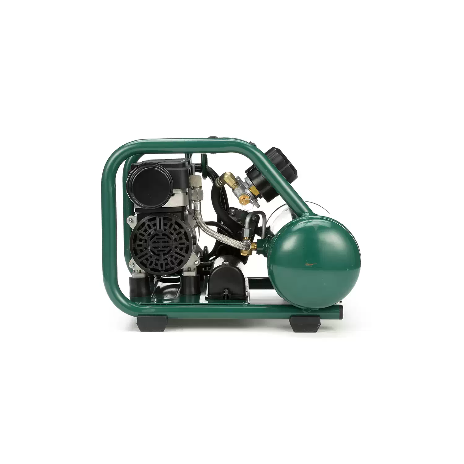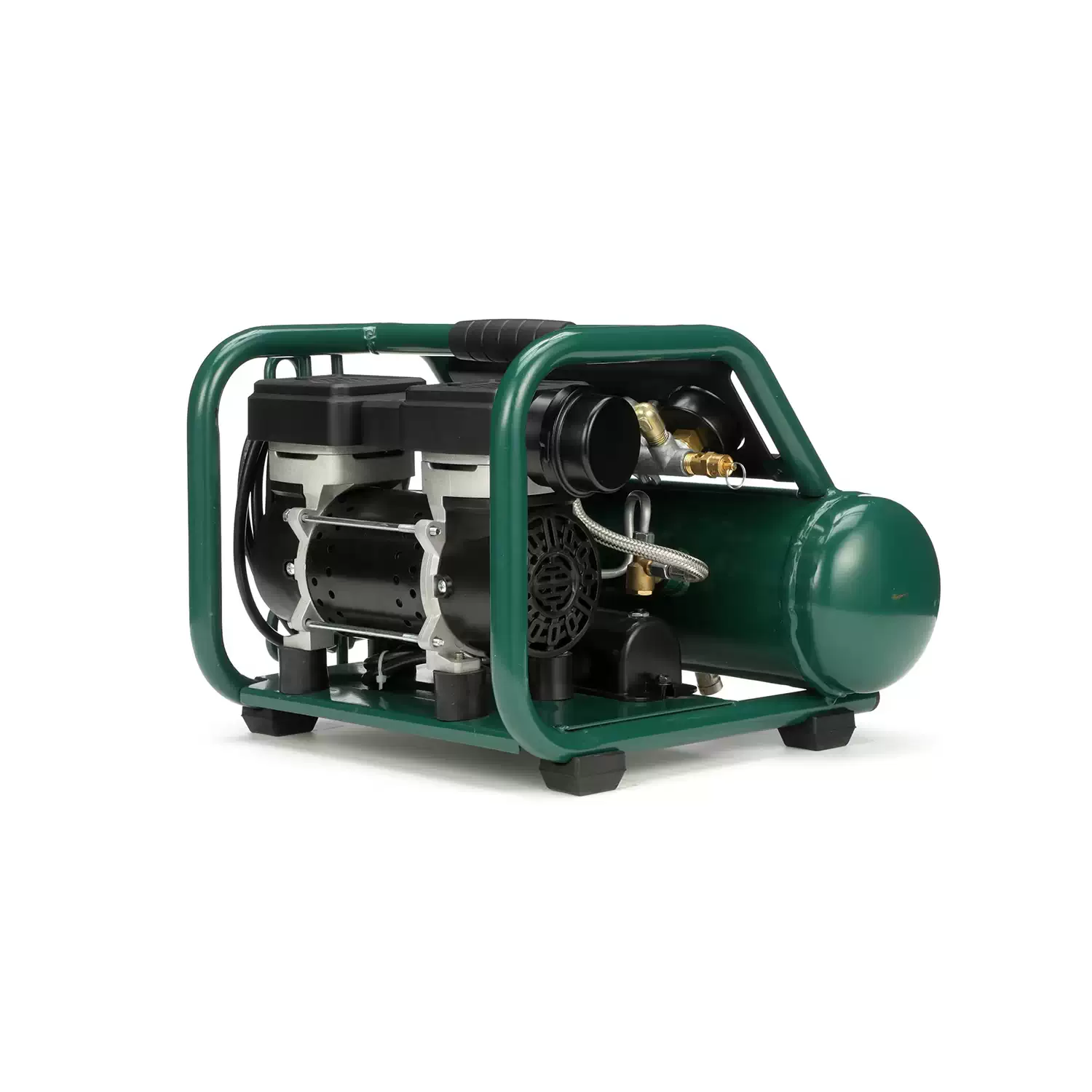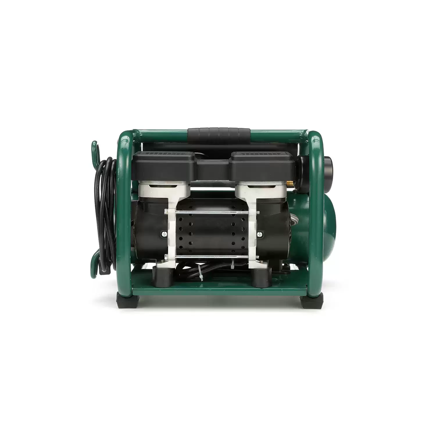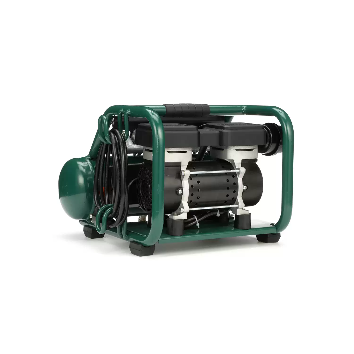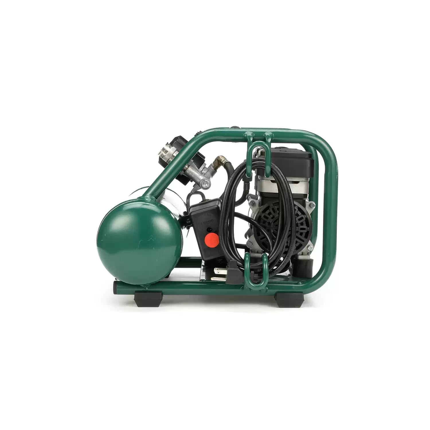 Built for easy transport and day-to-day use, the AB5PLUS combines a compact 1 gallon tank with a low amp draw 0.5 HP motor and a two-cylinder oil-less pump. The cast-aluminum cylinder, stainless-steel reed valve, ball bearings, manual overload protection, and 1700 RPM operating speed all support quiet performance and practical portability. At only 59 dBA, this hand carry air compressor is a strong fit for finish work, interior tasks, and other applications where lower compressor noise is a priority.