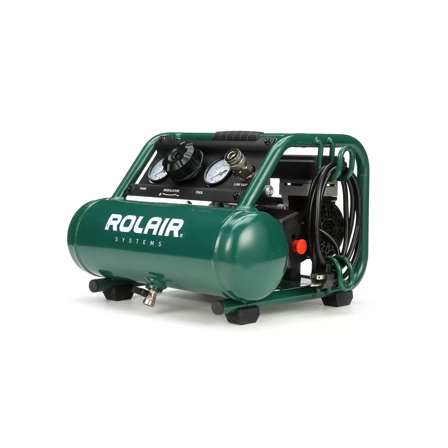 Customers choose the Rolair AB5PLUS because it offers very quiet operation in a compact hand carry format that is easy to move and easy to store. The 1 gallon tank, low amp draw motor, and oil-less pump design make it a practical choice for trim work, punch-list jobs, indoor service tasks, and other lighter-duty applications where portability and lower noise are important.