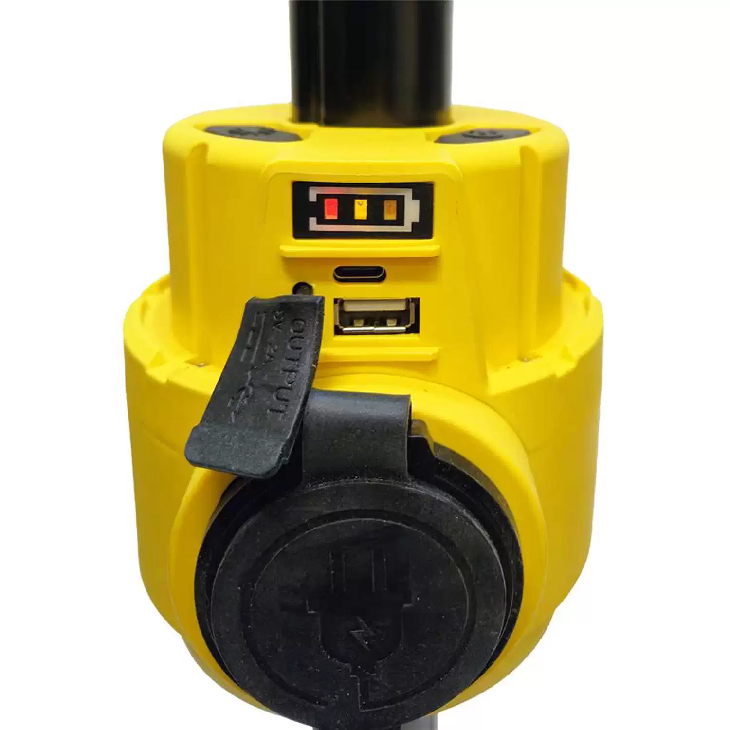 Designed for mobility and fast setup, the telescoping tripod extends to 7.5 ft for overhead flood lighting and collapses to 35″ × 7.5″ × 4.5″ for transport. Built-in USB-A and USB-C outputs can top up phones, tablets, meters, or cameras on site. The hybrid power design supports 100–240V, 50–60 Hz operation at 90W on AC and 40W on battery, giving crews dependable lighting indoors and in remote areas. A 1.5 m 16AWG cord, USB-C cable, and carrying bag are included.