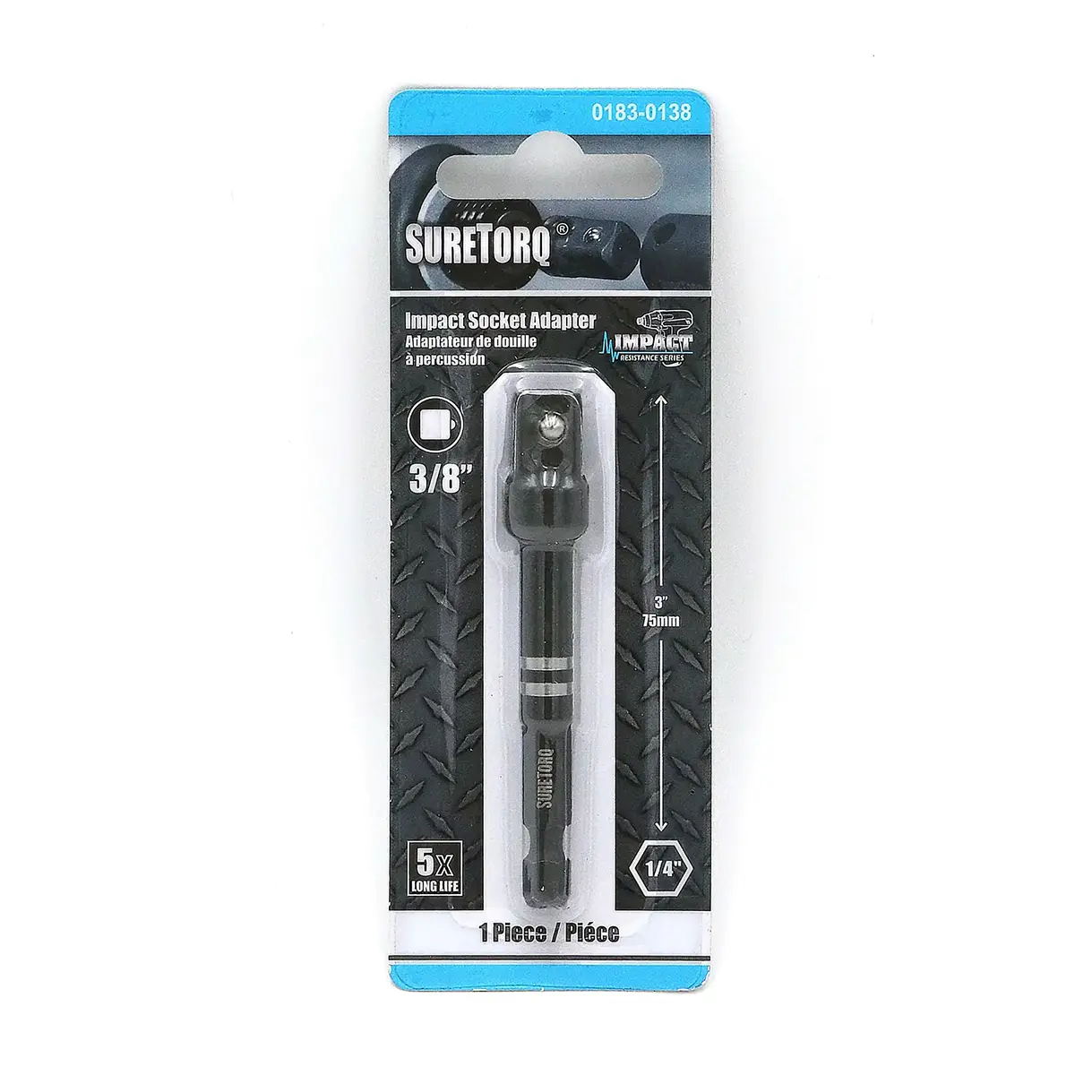 The Suretorq® 3″ Impact Socket Adapter is a reliable, impact-rated accessory designed for professionals and serious DIY users needing to convert and extend drive reach during fastening or removal tasks. This 1/4″ drive adapter is made from CrV 6150 alloy steel, offering increased durability under load, and is built to handle the demands of impact tools. It features a corrosion-resistant black phosphate coating and a secure ball retention design for added safety and stability during operation. Whether you’re working in tight spots, overhead, or just need an extra reach, this adapter makes your socket set more versatile for everyday jobs on-site or in the shop.