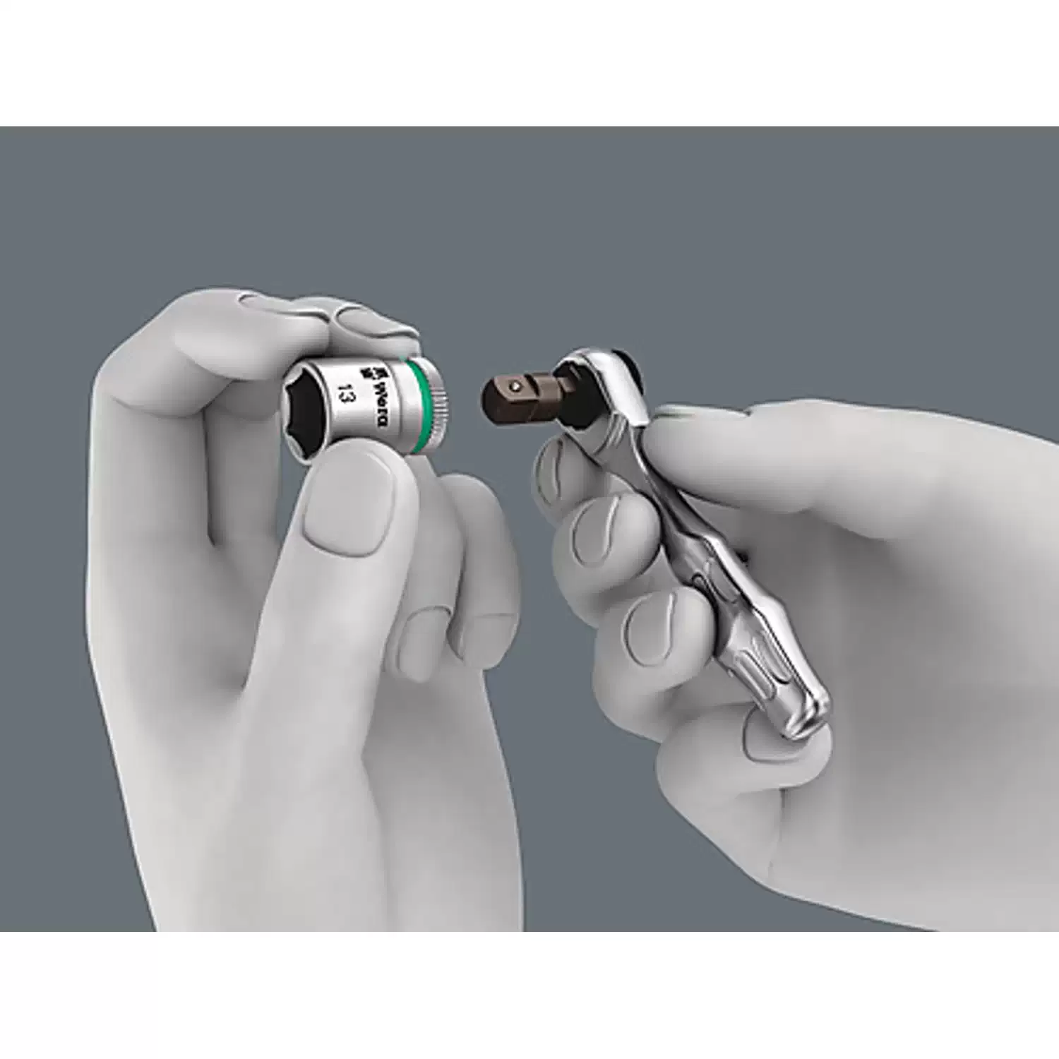 Technicians choose the Wera Tool-Check PLUS because it supplies a full 1/4″ fastening system in a compact case that fits easily into tool bags and service vehicles. The bit ratchet, Rapidaptor holder, and Zyklop sockets allow crews to complete fastening tasks without bringing multiple tools to the jobsite. For work in tight spaces—such as HVAC housings, automotive interiors, and electrical enclosures—the 6° return angle gives users the control needed to remove or install fasteners without repositioning larger tools.